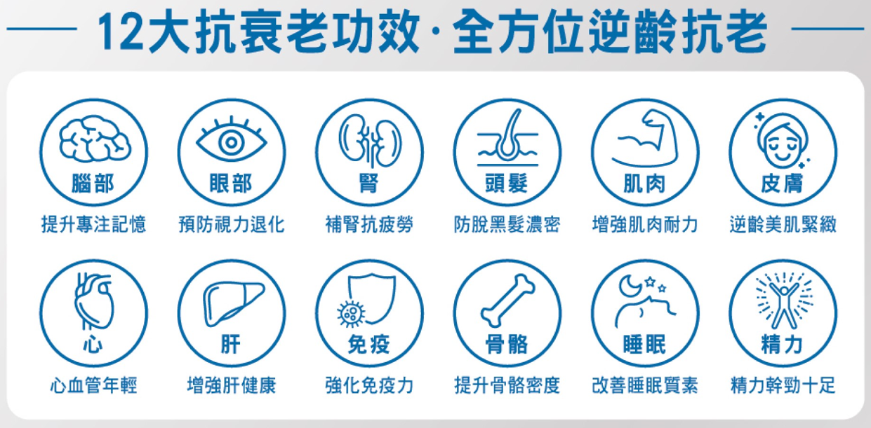 更全面: 12大抗衰老功效,全方位逆齡抗老